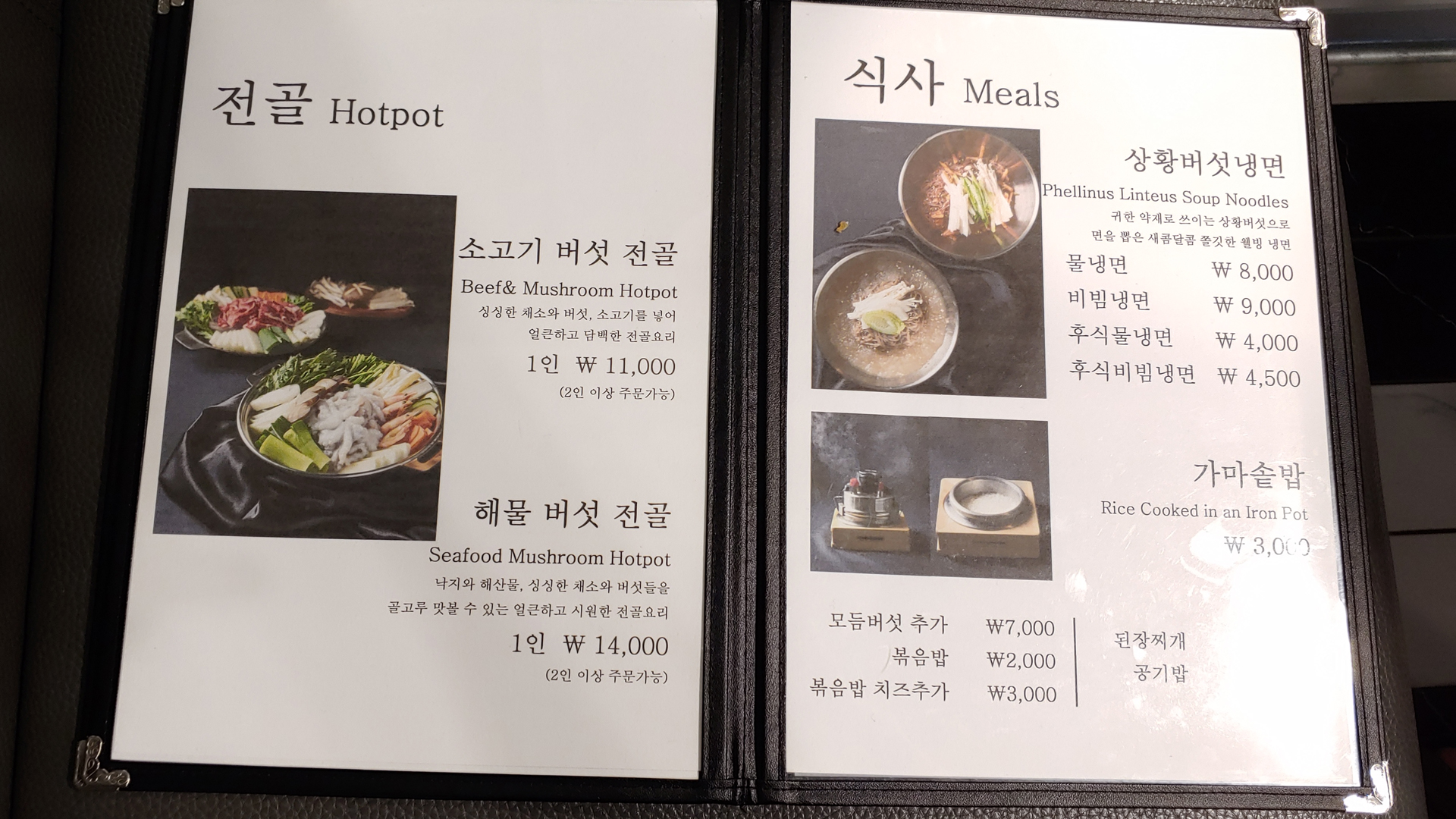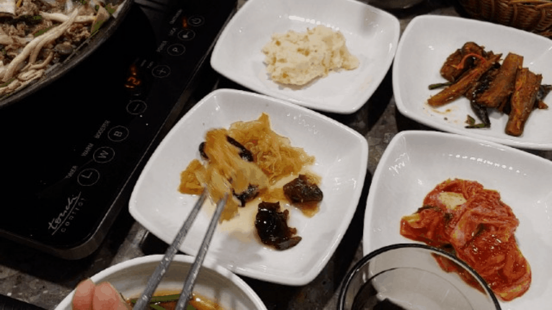 반찬과 메인 요리인 소고기 버섯전골이 같이 나왔네요.